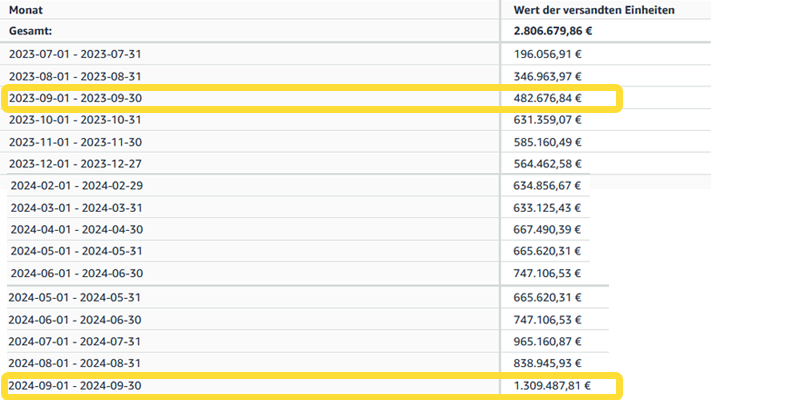 Start des Vendor-Geschäfts in DE im Januar 2024. Nach 5 Monaten konnte bereits ein Umsatz von 314k erwirtschaftet werden. Zentraler Punkt war der perfekt durchgeführte Produktlaunch der neuen Listings auf Amazon.